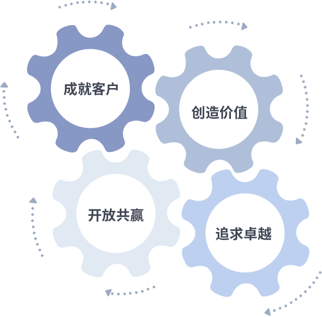 成就客户是一切决策的出发点,创造价值是衡量所有工作的标准,追求卓越是拉斯维加斯9888做事做人的态度,开放共赢是拉斯维加斯9888的格局也是最终的结果。价值观的齿轮环环相扣,推动着组织里的每个人不断向前。